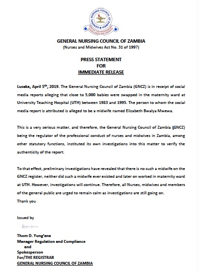 新京报讯(见习记者 罗婞)近日,“赞比亚护士12年间调换5000名婴儿”的消息引发一些大V和媒体的转发。今日,赞比亚护士总委员会(General Nursing Council of Zambia)发言回应新京报记者称目前查无此人,但仍会继续调查。