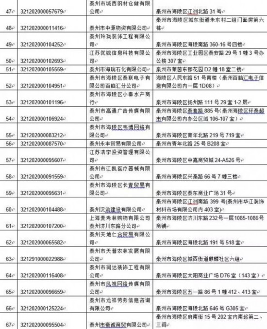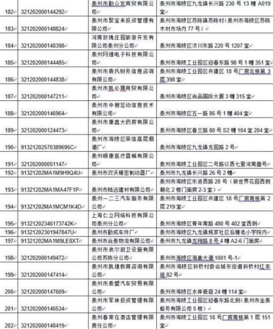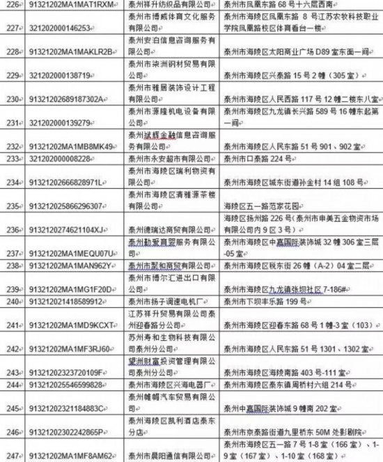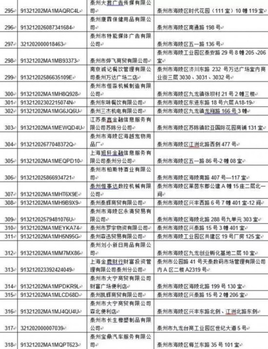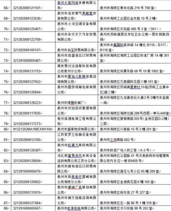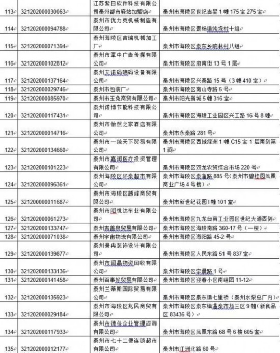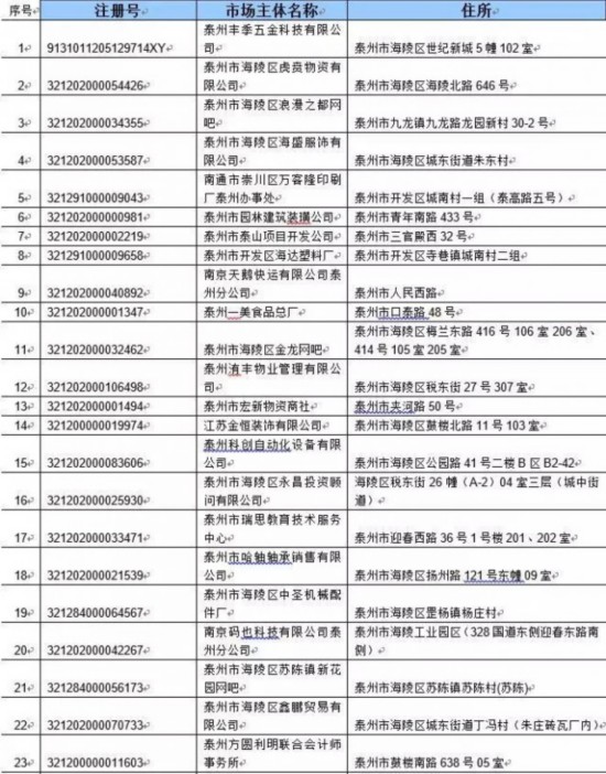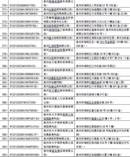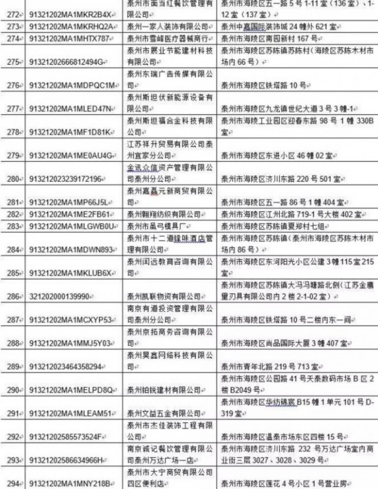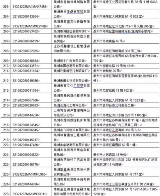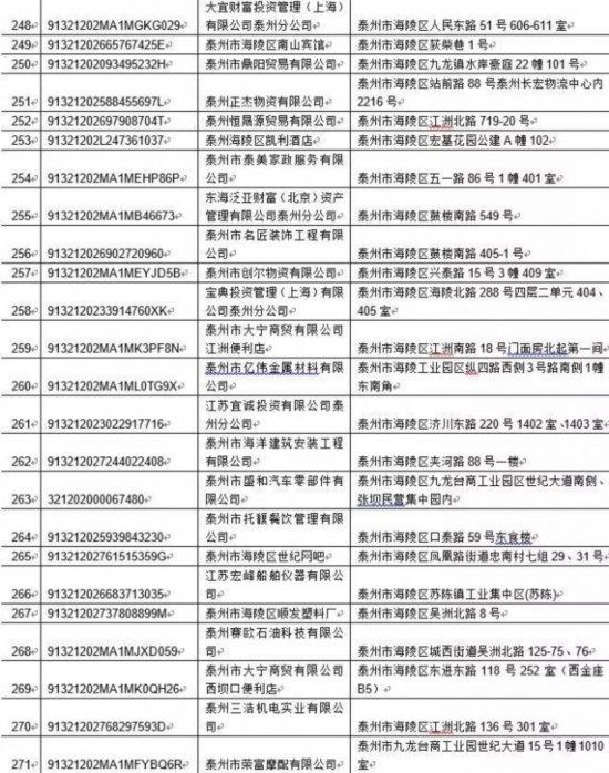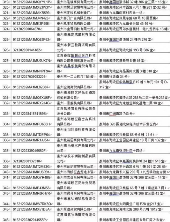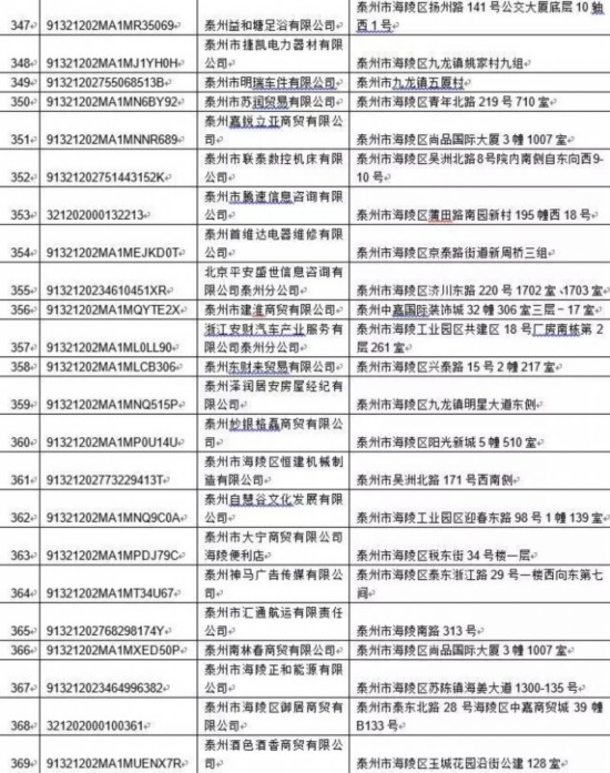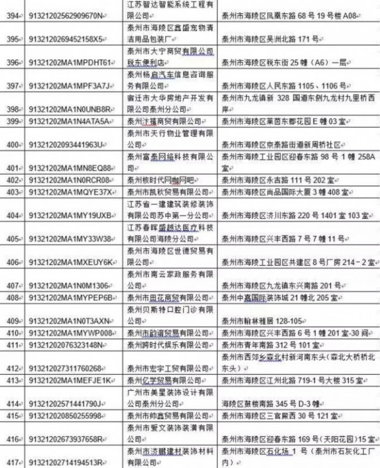 泰州丰季五金科技有限公司等417家单位: