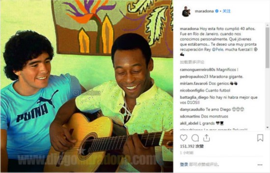 马拉多纳发布了一张经典的老照片祝贝利早日康复