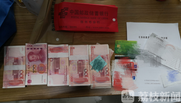 老孙和老王日常的工作岗位在扬州火车站出站口广场上,负责辅助维护广场秩序。这天,两人在巡逻途中发现16路公交站台的候车座位上有一个蓝色的袋子,四处无人,怀疑袋子是有人遗忘在此。两人打开袋子,发现内有一个红色的小袋和一些银行卡、公司合同之类。再打开红色小袋后,大把现金让两人为之一惊。钱很新,像是刚从银行取出,大致看了一下,估摸有三、四万,这可不是小数目,两人立马决定交给民警处理。