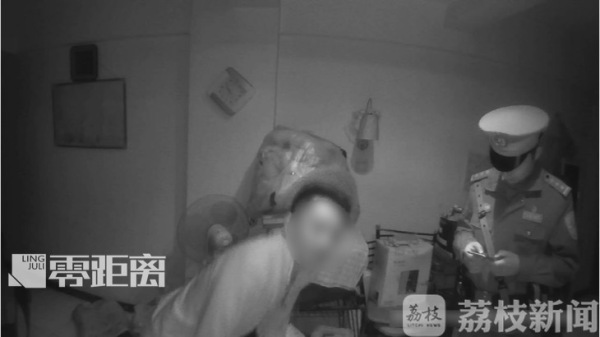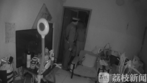 民警上楼后,敲门一直没人应,便用钥匙打开了房门。当时家里的灯是关着的,但是民警记录仪的灯照着,看到里面屋子里有一名男子贴着窗玻璃往外看。民警敲开了房门,确实有一名男子在里面。