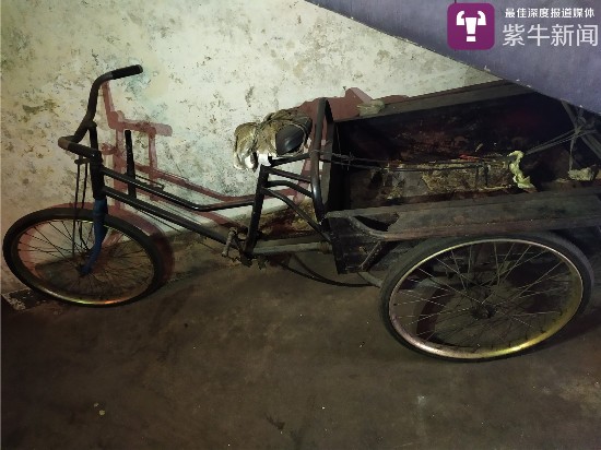 4月10日中午,扬子晚报紫牛新闻记者来到老人所住小区,看到住的车库大门紧锁,楼道内还停放着他生前拾荒用的小型三轮车。
