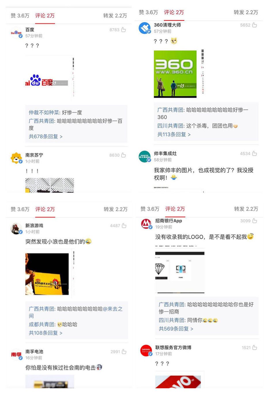 一石激起千层浪,百度、南京苏宁、360清理大师不少蓝V大号在评论里跟帖表示自家的Logo也是同样的遭遇——