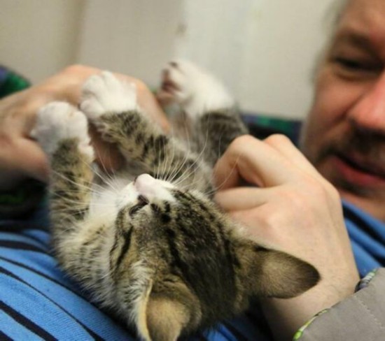 阿桑奇和小猫詹姆斯(图源:“使馆的猫”账号)