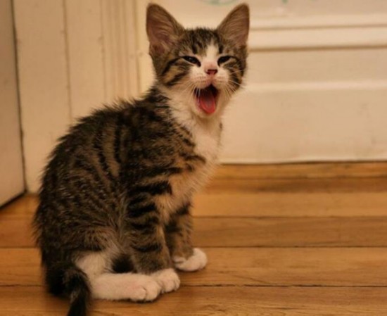 有时这个账号也会发一些只关注这只小猫的照片,像是詹姆斯刚刚起床、还打着哈欠的萌照。
