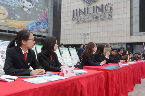 在广场上,建邺区扫黑办还安排了全区开展扫黑除恶专项斗争成果展示,并邀请群众进行安全感满意度现场测评,建邺区委政法委、区法学会、区公安分局、区检察院、区法院、区司法局也组织力量宣传反邪教、防范电信和网络诈骗、禁毒拒毒等知识,邀请公证员、专业律师进行涉黑涉恶、涉婚姻、涉物业等法律咨询服务,让广大市民积极举报涉黑涉恶线索。