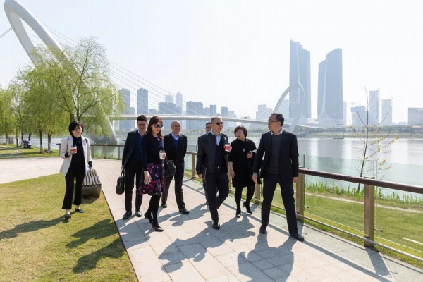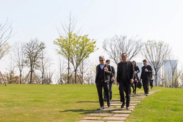 尤善钡一行来到了青奥森林公园,沿生态步行绿道,对全岛贯彻“生态与科技平衡发展”建设理念表示赞同。