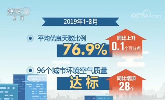 2019年1-3月,平均优良天数比例为76.9%,同比上升0.1个百分点;96个城市环境空气质量达标,同比增加28个;