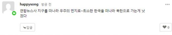 “韩联社离开地球吧,至少离开韩国,去朝鲜比较好。”
