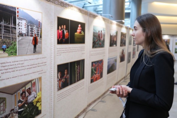 4月10日,反映中国脱贫成就的40余幅照片在布鲁塞尔欧洲议会大厦展出。新华社记者张铖摄