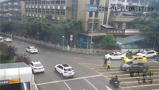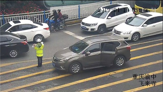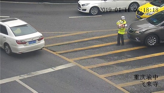 这名女交巡警叫肖伟,来自渝中区交巡警两路口大队,她当时的工作是负责两路口飞来寺高峰岗的执勤。