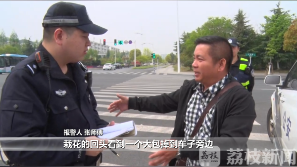 昨天(4月12号)下午3点多,南京的张师傅在学海路与文澜路路口进行绿化作业时,捡到了一只装有7万多元现金和几十万货款单的帆布包。