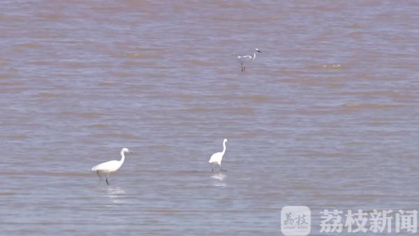 在盐城东台条子泥景区,离海岸堤坝不远处,10万只鸻鹬成群结队,时而腾空飞舞,时而水上栖息,密密麻麻,形成万鸟覆波的壮景。被称为“鸟类大熊猫”的勺嘴鹬憨态可掬,挺着肥胖的身体在滩涂上悠闲地觅食;远处的白鹭扇动着修长的翅膀降落水面,三五一群写意栖息。万鸟云集的场面让在场的摄影师毫不吝啬手中的快门,大家都想记录下鸟儿最美的瞬间。