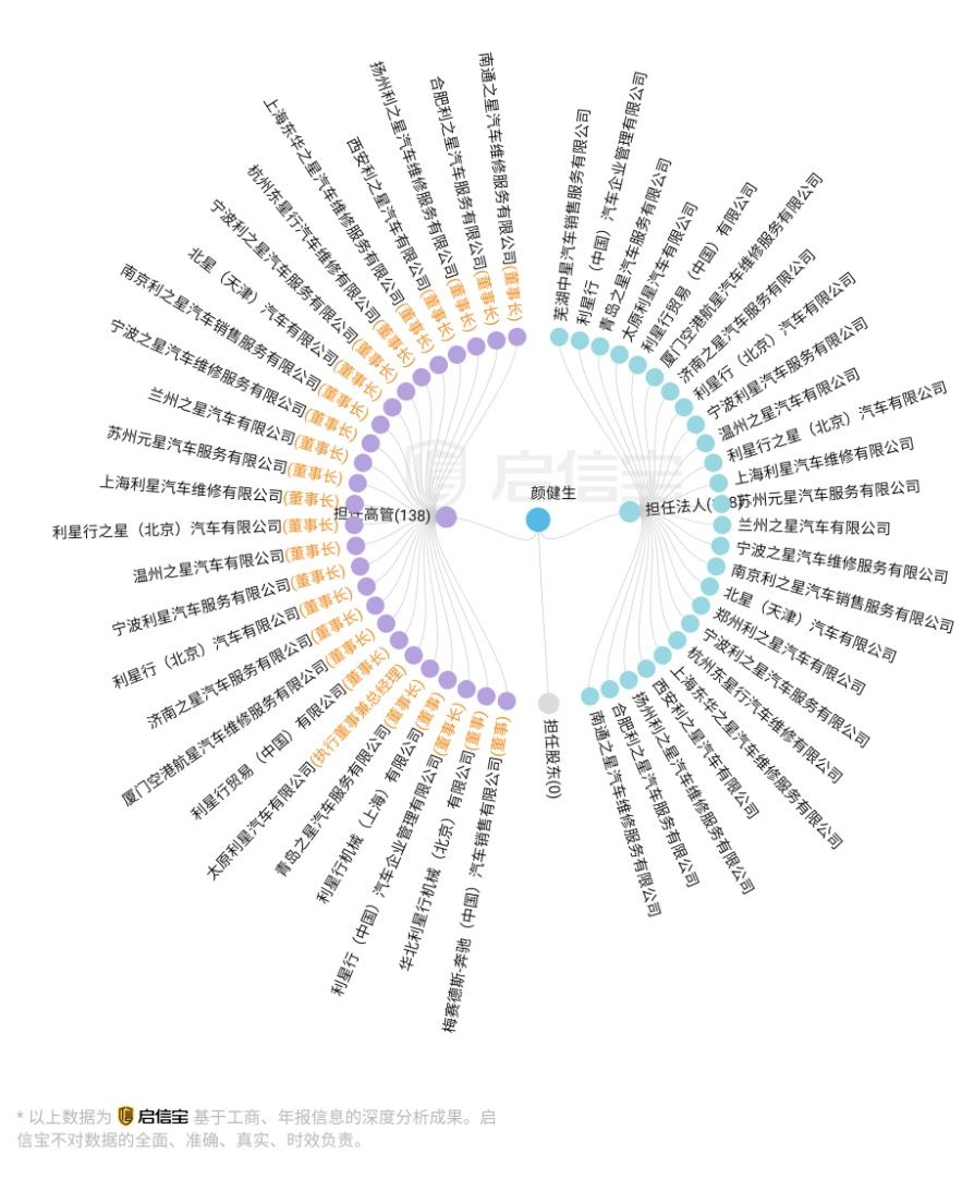 进一步查询启信宝显示,西安利之星的企业类型为外资投资企业分支机构,为外资公司。值得关注的是,由颜健生担任法定代表人的企业多达128家,包括利星行(中国)汽车企业管理有限公司和利星行贸易(中国)有限公司,担任高管139家在担任法定代表人或任职的企业中,多数与利星行相关。这就是说,在诸多利星行旗下的奔驰4S店中,颜健生担任法定代表人,拥有决定性话语权。