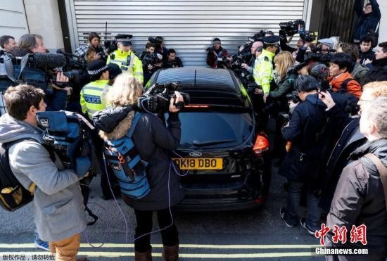 美国司法部发布声明称,阿桑奇将以涉嫌合谋入侵美国政府机密电脑的罪名被起诉。如果罪名成立,他将面临最高5年的监禁。图为众多媒体人士围绕在一辆驶抵伦敦威斯敏斯特法院的警车旁。