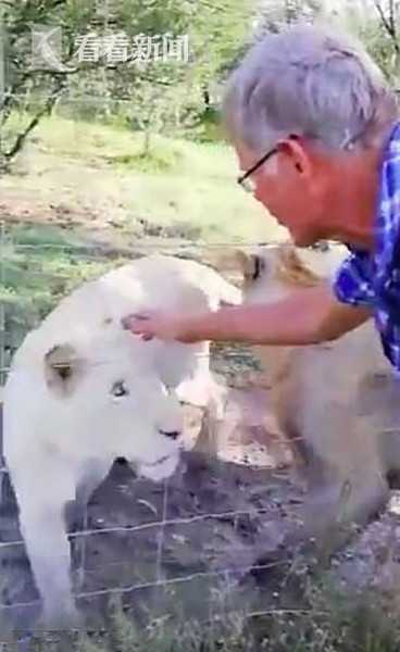 据英国《每日邮报》4月13日报道,现年55岁的彼得·诺齐是一家汽车公司的机械师,和妻子伊尔兹居住在自由州省维吉尼亚小镇,不久前两人迎来结婚十周年的纪念日,一起前往当地的度假小屋游玩。在参观野生动物园区时,彼得突然对一群狮子产生了浓厚兴趣,他大胆地将手伸进铁丝网逗弄狮子。