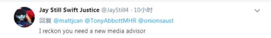 不仅如此,卡纳万还在推特上点名澳大利亚前总理托尼·阿博特说:“也许托尼·阿博特把(习惯)传到这了......”同时@澳大利亚洋葱协会说:“你猜呢?”