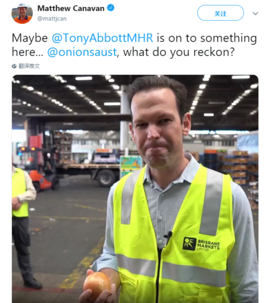 据英国《卫报》14日报道,澳大利亚资源部长马修·卡纳万当天访问布里斯班一市场后,在推特上发布了一段自己生吃洋葱的视频。视频显示,卡纳万吃的这个洋葱连皮都没剥,上手就吃。