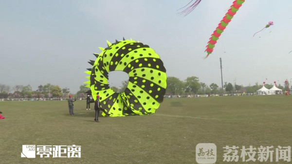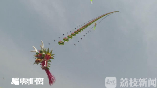徐州市风筝协会的谢洪彦介绍,在徐州队带来的众多风筝中,以一只龙头蜈蚣造型的风筝最有特色。其中,风筝头部由一只活灵活现的龙头组成,中间及尾部一共有60节小单元,活像一只蜈蚣。整个风筝总长近四十米,纯为手工轧制,据说是一个人花了近两个月才制作完成。而这只风筝,也曾斩获潍坊国际风筝会一等奖。