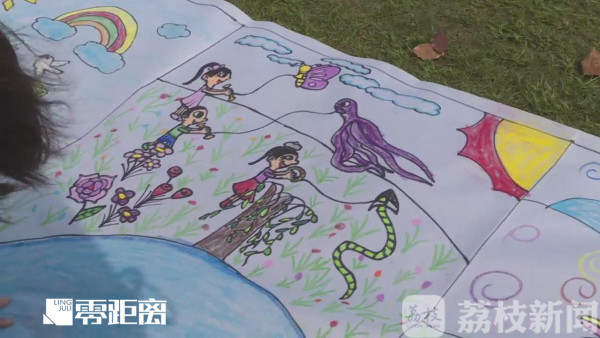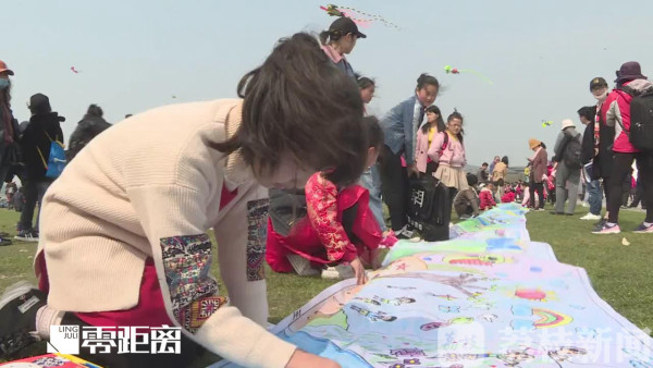 在现场,除了形态各异的风筝表演,还有以风筝为主题的、近百名画童现场画出的百米长卷。画卷上不仅有大龙湖的美景,风筝节的盛况也跃然纸上,看上去赏心悦目,童趣十足。