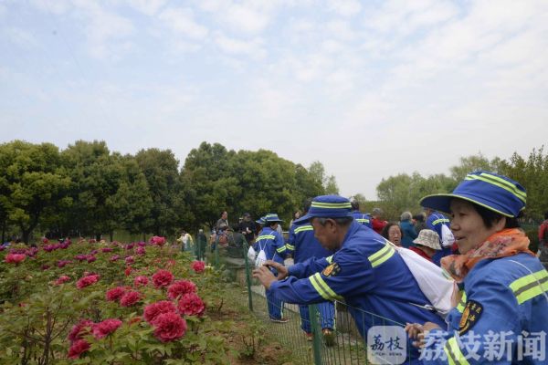 眼下,正是牡丹花开的最佳观赏期。在长江观音景区赏牡丹、品美食时,环卫工人们纷纷和牡丹花合影留念,王大姐说,自己在南京已经十几年了,第一次出来看牡丹花一定要多拍点视频,发给家里人,让他们一起看看这么美的花。徐大哥应该是个才子,他在牡丹花丛中念起了唐代诗人张又新《牡丹》,“牡丹一朵值千金,将谓从来色最深。今日满栏开似雪,一生辜负看花心。”