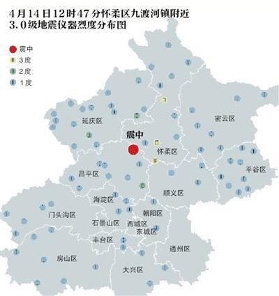 昨日12时47分,在北京怀柔区(北纬40.34度,东经116.39度)发生3.0级地震,震源深度19公里。震中距离昌平城区19公里,距北京市区48公里。中国地震台网中心专家认为,近期北京地区发生的两次3级左右地震属于正常的地震活动,都发生在周日13时左右纯属巧合。