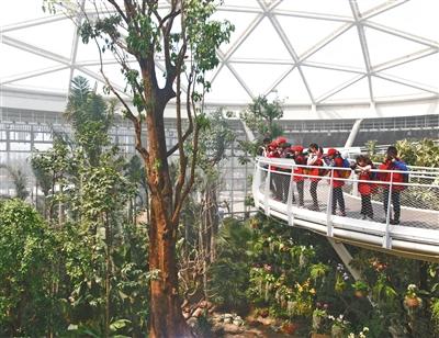 空中花园、独木成林、老茎生花……一走进植物馆的热带植物温室,9名摄影组的小记者就迫不及待地拿起相机,记录那些平时难得一见的神奇植物。在这块约3000平方米的场馆内,汇聚着红树林、弥勒树、面包树等600多种珍贵植物。
