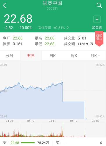 4月15日,视觉中国股价再次一字跌停,今日开盘报22.68元。视觉中国股价连续两个交易日跌停,市值蒸发超过37亿元。目前视觉中国网站依然无法打开。多家基金公司发布公告下调视觉中国估值。