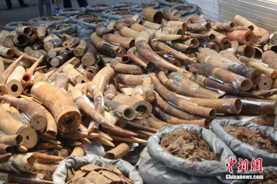 资料图:走私象牙。中新社记者 谢光磊 摄