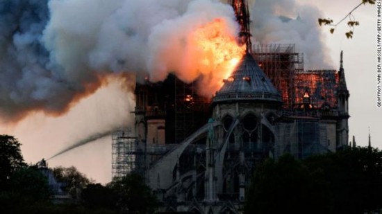 报道称,法国总统马克龙已取消一场重要的政策演讲正前往现场。他在推特上表示:“被火焰吞噬的圣母院,是整个国家的情感。”