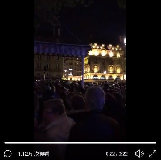 夜色降临后,巴黎市民自发集中起来,为圣母院遭遇的损失进行哀痛的纪念活动。