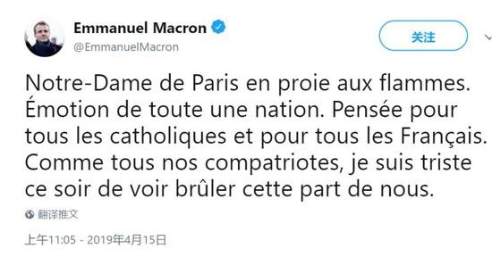 法国总统马克龙也紧急打断了正在进行的重要电视讲话,为法国人通报火灾最新情况。