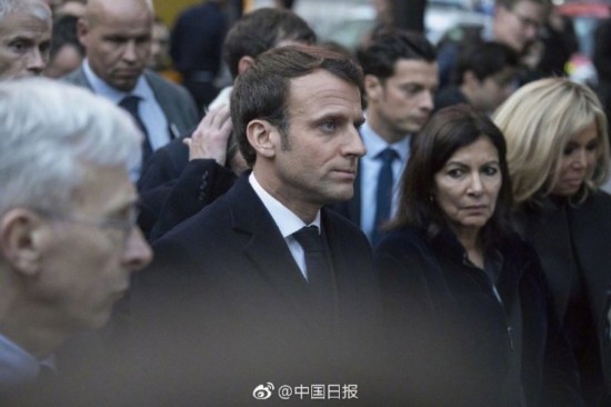 火灾发生后,法国总统马克龙紧急赶往现场,在社交媒体上表达了对巴黎圣母院火灾的痛心。