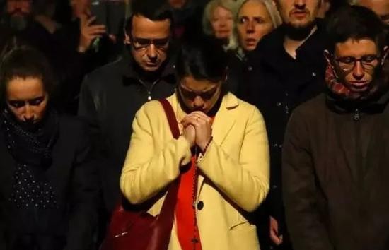 无数来自世界各国的人们只能在塞纳河边上远远围观,无奈地祈祷默哀,他们的脸上写满了悲伤。