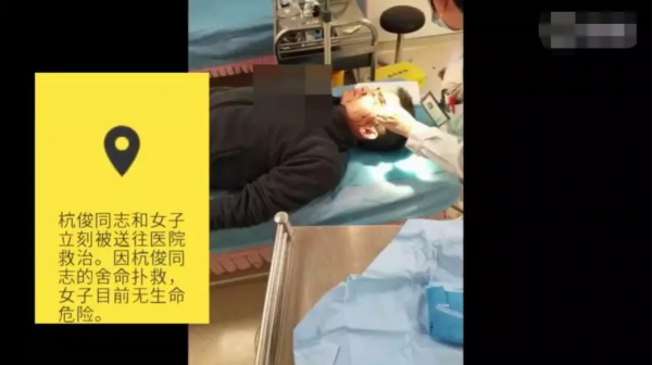 4月10日晚7点多,南京一名女孩因感情问题在家中欲跳楼轻生。危急关头,接警民警杭俊一个箭步上去舍身接抱。女孩接住了,而杭俊却因巨大的冲击力被砸倒昏迷,头破血流多处受伤。