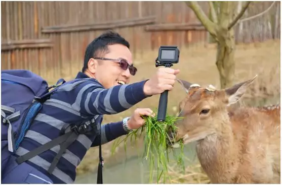 随着蜿蜒的道路,悠悠碧波,青石彩林映入眼帘,旅游达人们喂食梅花鹿,纷纷与小可爱们合影。