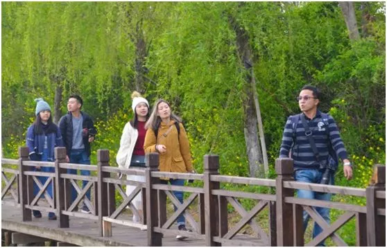 4月11日下午,大家到达三台山国家森林公园,在耸拔林木间漫步、烂漫花海中跳跃,在“嘟嘟”前行的时尚小火车上,将白马溪涧、梨兰盛会、衲田民宿等景点览于眼底,园内苍松翠柏宛如一条条虬龙盘绕,令人叹为观止,花海飘香千万里,令人不禁产生了“回归原始大自然”的感受!