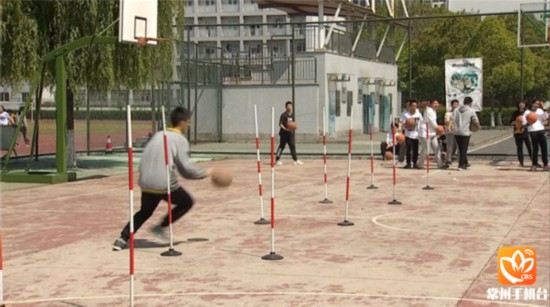 4月15日上午十点,新北区实验中学九年级的同学们,在体育活动课上,按照体育中考报考项目进行分组训练,按照考试规则,考生可根据自身条件和兴趣爱好,在体能和球类8个项目中自选3项。学生黄孙脉恒选择的是50米跑、篮球运球和实心球项目,但实心球比较薄弱。