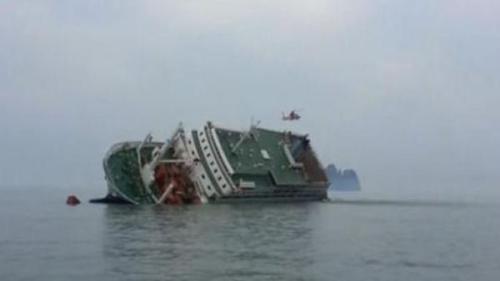 资料图:当地时间2014年4月16日,“世越号”客轮沉没。