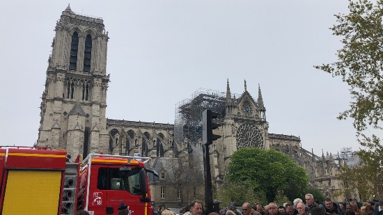 (原标题:中国向导现场播报巴黎圣母院最新状况 侧面玫瑰花窗仍存)