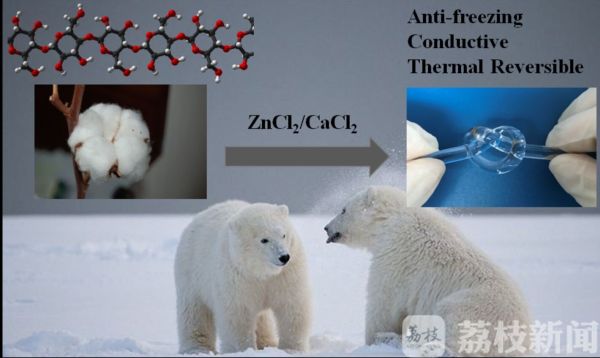 这种由无机盐溶解纤维素产生的新型水凝胶,耐冻能力同样惊人,在零下60度的低温状态下仍能正常工作。传统水凝胶材料在零度以下难免要“缴械投降”,变成冰块了。新型水凝胶有着广阔应用前景,可在电子器件、软体机器人、药物释放、电子皮肤等领域大显身手。