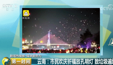 云南:市民欢庆祈福放孔明灯 致垃圾遍地