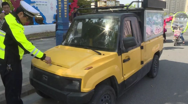 4月15日上午九点,在翔宇大道与深圳路路口,一辆电动四轮车在机动车道内行驶。见此情形,民警立即上前进行查处。