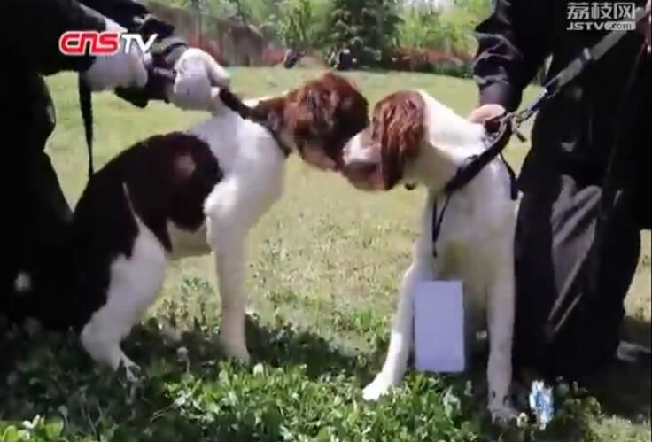 镜头前的两只史宾格犬因为嗅觉灵敏的特性,主要担负着地铁日常的搜爆职责。不足半岁的它们俩当天也拥有了自己的名字,分别叫做“初一”和“十五”,而另一只七个月的拉布拉多犬则被训导员亲切称为“抹茶”。