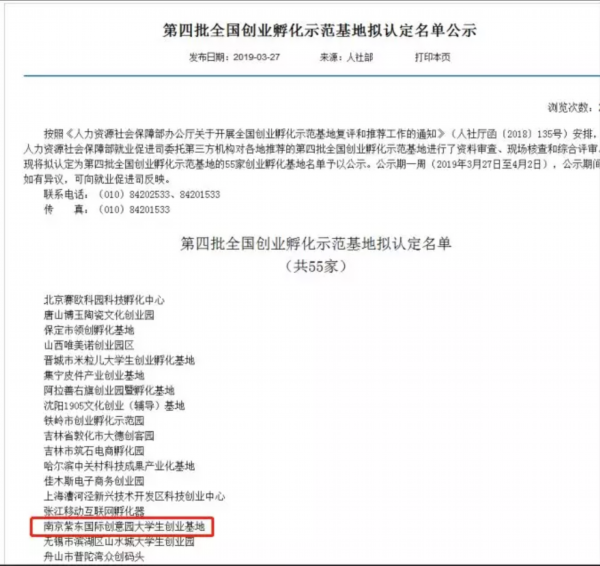 近日,国家人力资源和社会保障部公布了第四批全国创业孵化示范基地名单,栖霞高新区紫东国际创意园大学生创业基地喜获“全国创业孵化示范基地”认定!紫东大学生创业基地成为南京市唯一一家被认定的国家级创业孵化示范基地,这是紫东大创基地继获得“南京市大学生创业园”和“江苏省大学生创业基地”之后收获的又一殊荣。