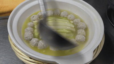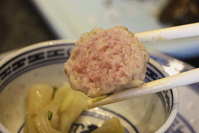 作为一道经典的淮扬菜,蒲菜肉圆的核心在于肉圆的制作。肉圆选料讲究,制作精细,配料多样。首先要选择猪后腿的精瘦肉,配以适量肥肉。制作时,用冷水洗净,切成小块,然后用刀背敲击,葛师傅告诉记者,做肉圆最关键的步骤就是敲打,用刀背来回敲打40分钟以上,这样敲出来的肉泥是糊状的,制作成的肉圆才会有弹性、筋道,最后,加以蛋清、碱粉、姜葱等佐料,搅拌均匀后,方可下锅,或氽汤,或油炸,皆成美味。