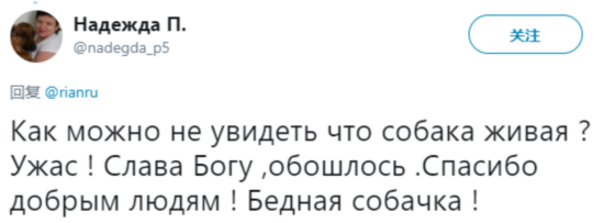 网友娜捷日达:“你怎么能看不到狗还活着?太可怕了!感谢上帝。感谢善良的人们!可怜的狗!”