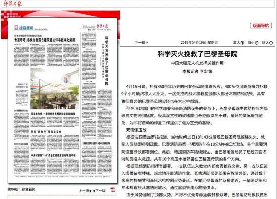而美国石英财经网站16日的报道则透露了巴黎圣母院得以被“拯救”的一个关键细节:要不是消防人员使用了无人机,火灾造成的损害可能会严重得多。