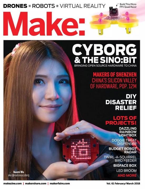 为了表达诚恳的歉意,Dale还亲自去了深圳采访Naomi,并让她登上2018年2月/3月的杂志封面上,让她成为第一位上创客杂志Make封面的中国人。
