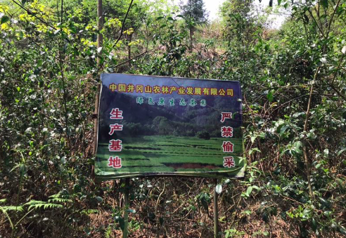 《华夏时报》记者看到,茶园中一些茶树的新茶叶被采摘,有些茶树被砍,有些地块种上了新的树种。沿着茶园的山路,有潺潺的溪流,茶树与山林基本保持着原始的生态风貌。路边不时可以看到指示牌,上面写着“中国井冈山农林产业发展有限公司绿色原生态茶园,生产基地,严禁偷采。”